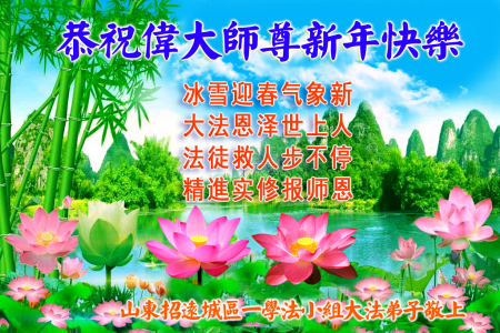 Toàn thể đệ tử Đại Pháp tại Linh Lung, thành phố Chiêu Viễn, tỉnh Sơn Đông kính chúc Sư tôn năm mới vui vẻ!