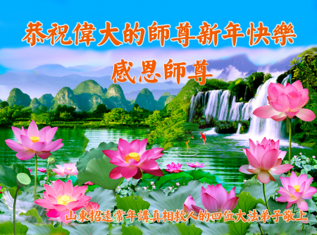 Bốn đệ tử Đại Pháp quanh năm giảng chân tướng cứu người ở thành phố Châu Viễn, tỉnh Sơn Đông kính chúc Sư tôn năm mới vui vẻ!