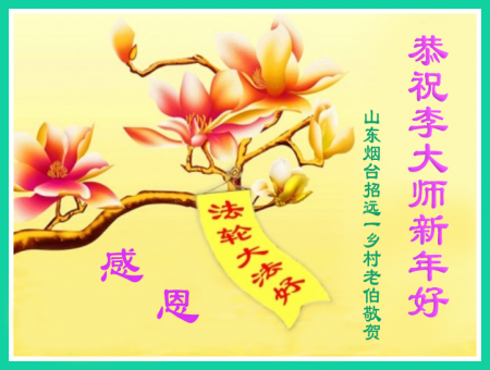 Một đệ tử Đại Pháp là cán bộ doanh nghiệp đã nghỉ hưu ở thành phố Chiêu Viễn, tỉnh Sơn Đông kính chúc Sư tôn năm mới vui vẻ!
