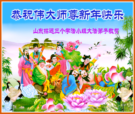 Ba đệ tử Đại Pháp ở nhóm học Pháp nhỏ tại thành phố Chiêu Viễn, tỉnh Sơn Đông kính chúc Sư tôn năm mới vui vẻ!