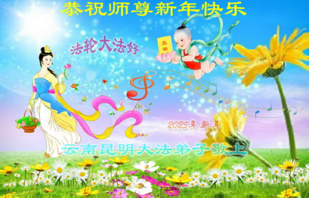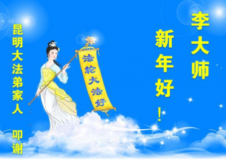 Các đệ tử Đại Pháp ở thành phố Côn Minh thuộc tỉnh Vân Nam cung chúc Sư Tôn từ bi vĩ đại năm mới vui vẻ!