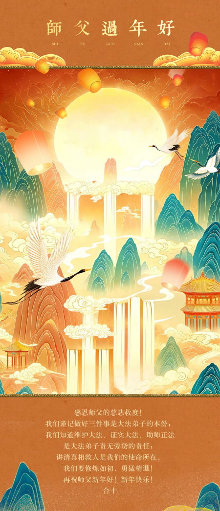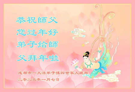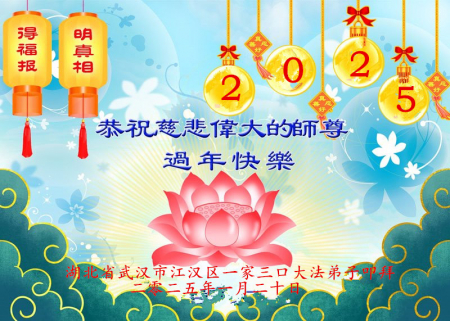 Nhân dịp ngày Tết truyền thống năm Ất Tỵ của Trung Quốc đang đến gần, các đệ tử Đại Pháp chúng con ở Trung Quốc đại lục kính chúc Sư phụ Lý Hồng Chí năm mới vui vẻ!