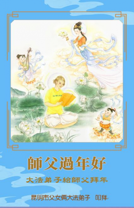 Các đệ tử Đại Pháp ở Côn Minh, tỉnh Vân Nam kính chúc Sư phụ từ bi vĩ đại năm mới vui vẻ!