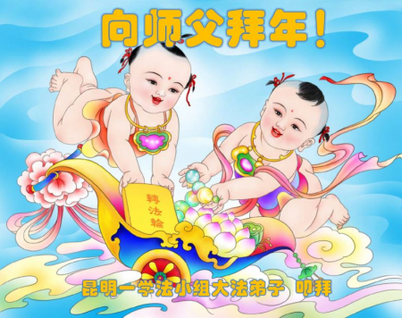 Các đệ tử Đại Pháp từ một nhóm học Pháp ở Côn Minh kính chúc Sư phụ năm mới vui vẻ!