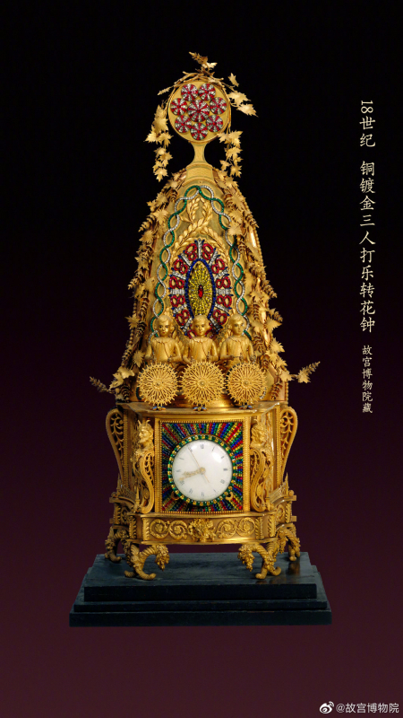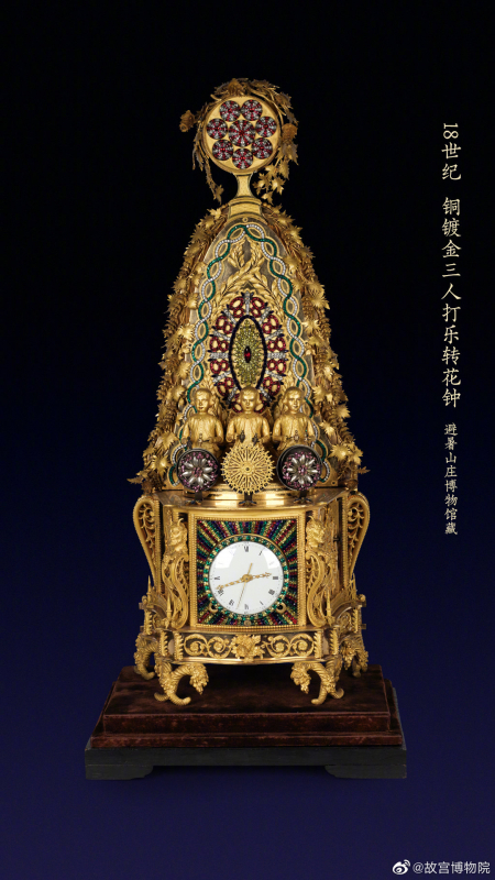 Trong hình dưới đây là ba cặp đồng hồ được trưng bày theo đôi, mỗi cặp được lưu giữ tại hai viện bảo tàng khác nhau. Chúng là minh chứng sống động cho sự kết nối giữa các hoạt động cung đình tại hai địa điểm, đồng thời kể câu chuyện về dòng chảy của thời gian và những đổi thay của lịch sử qua năm tháng.