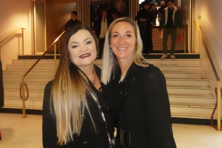 Chiều ngày 19 tháng 04 năm 2025, cô Bénédicte Éguren (phải) và cô Alexandrina Gabriel đã xem buổi biểu diễn thứ tư của Đoàn Nghệ thuật Biểu diễn Shen Yun tại Trung tâm Hội nghị Quốc tế Paris, Pháp. (Ảnh: Delong/The Epoch Times)