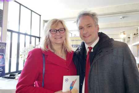 Chiều ngày 6 tháng 4 năm 2025, Đoàn Nghệ thuật Biểu diễn Shen Yun đã có buổi diễn thứ tám tại nhà hát Festspielhaus Neuschwanstein ở Füssen, Đức. Ông Alexander Wanke, chủ một công ty tư vấn cùng vợ, bà Doris Polkowski, phó hiệu trưởng của một trường dạy nghề từng đạt giải thưởng, đã đến xem chương trình. (Ảnh: An Ran/The Epoch Times)