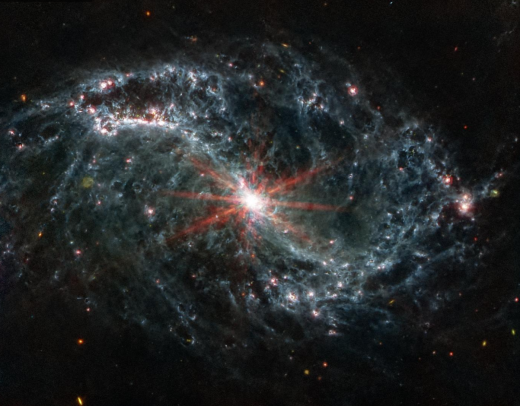 Hình ảnh được chụp và tổng hợp bởi kính viễn vọng không gian Webb cho thấy mạng lưới khí và bụi phức tạp bên trong thiên hà xoắn ốc NGC 7496. (Nguồn: NASA/ESA)