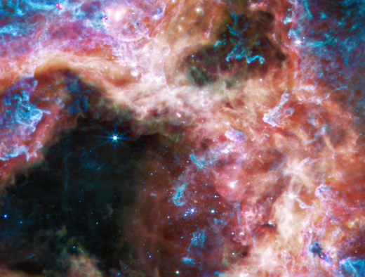 Ngày 06/09/2022, NASA đã công bố một hình ảnh “Nhện vũ trụ” (Cosmic Tarantula) được chụp bằng thiết bị hồng ngoại trung (MIRI) của kính viễn vọng không gian Webb. (Nguồn: NASA/ESA/CSA/STScI/Nhóm sản xuất Webb ERO)
