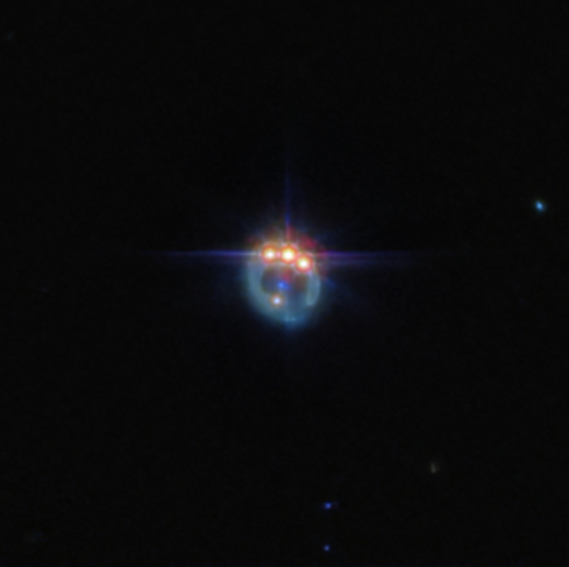 Hình ảnh do NASA công bố vào ngày 14/03/2023 được chụp bởi kính viễn vọng không gian Webb, cho thấy một cảnh tượng hiếm hoi: khúc dạo đầu của một vụ nổ siêu tân tinh, với sự hiện diện của một ngôi sao Wolf-Rayet (Wolf-Rayet) siêu sáng và khổng lồ. (Nguồn: NASA/ESA)