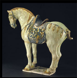 Trong thời nhà Đường còn xuất hiện đồ gốm sứ tráng men màu vàng, xanh lá cây, trắng, đỏ thẫm, xanh lam, gọi là “Đường tam thải”. Đường tam thải là đồ gốm tiêu biểu của thời nhà Đường, đây là đồ gốm tráng men chì nung ở nhiệt độ thấp, dùng đất sét trắng làm thân vỏ, và các khoáng chất như đồng, sắt, man-gan, cô-ban làm chất tạo màu cho men, chì còn được thêm vào như một chất trợ dung cho men và lớp lót, và cuối cùng đem nung ở nhiệt độ thấp.