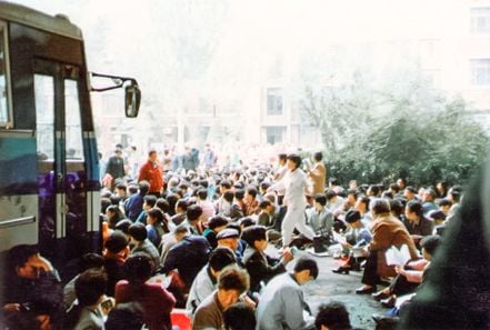 Vào ngày 21/04/1999, các học viên Pháp Luân Công kháng nghị ôn hòa tại Viện Giáo dục Thiên Tân.