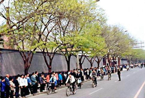 Ước tính có khoảng 10.000 học viên Pháp Luân Công thỉnh nguyện ôn hòa để yêu cầu trả tự do cho các học viên bị giam giữ, bên ngoài văn phòng thỉnh nguyện trung ương gần khu phức hợp chính quyền trung ương Trung Nam Hải.