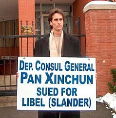 Các học viên Pháp Luân Công ở Úc khởi kiện Bộ trưởng Ngoại giao Alexander Downer do ông đã lạm quyền khi ký các giấy chứng nhận hạn chế các cuộc biểu tình ôn hòa trước Đại sứ quán Trung Quốc ở Canberra. Vụ kiện đã kết thúc sau một năm rưỡi kiện tụng. Một thẩm phán đã bác bỏ yêu cầu của nguyên đơn về việc hủy bỏ các chứng nhận gốc trước đó, và yêu cầu ông Downer chi trả chi phí kiện tụng 20.000 đô la Úc cho bên nguyên đơn. Trước đó ông Downer cũng đã chấp thuận không tiếp tục cấp những chứng nhận như thế này nữa.