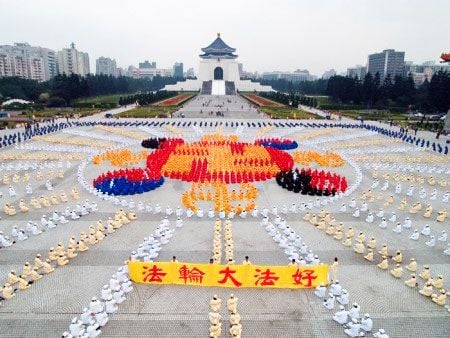 Hơn 4.000 học viên Pháp Luân Công ở Đài Loan xếp hình theo biểu tượng đồ hình Pháp Luân trước Nhà tưởng niệm Tưởng Giới Thạch ở Đài Bắc. Đây là sự kiện xếp hình quy mô lớn đầu tiên của các học viên Pháp Luân Công kể từ khi cuộc bức hại bắt đầu.