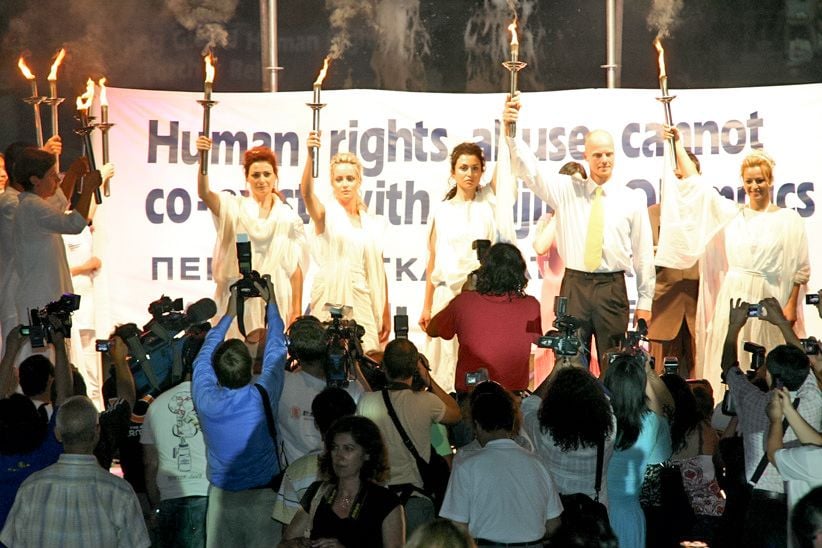 Trước thềm Thế vận hội Bắc Kinh được tổ chức vào năm 2007, các đại diện của Liên minh Điều tra Cuộc bức hại Pháp Luân Công và hàng trăm nhà hoạt động nhân quyền từ Châu Âu, Châu Mỹ, Châu Á, và Úc đã thắp đuốc trước Quốc hội Hy Lạp ở Athens, nơi Thế vận hội ra đời, nhằm kêu gọi ngay lập tức chấm dứt cuộc bức hại. Sự kiện này đánh dấu sự khởi đầu của cuộc rước đuốc nhân quyền toàn cầu kéo dài trong một năm ở hơn 100 thành phố thuộc 25 quốc gia.