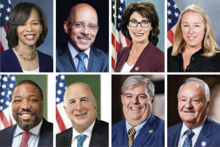 Nhân dịp Ngày Pháp Luân Đại Pháp Thế giới năm 2025, các quan chức ở nhiều cấp chính quyền của bang Pennsylvania và Delaware, Mỹ đã lần lượt gửi thư chúc mừng và khen ngợi để chúc mừng đến Ngày Pháp Luân Đại Pháp. Hàng trên, từ trái sang: bà Lisa Blunt Rochester – Thượng nghị sĩ Liên bang bang Delaware; ông Vincent Hughes – Thượng nghị sĩ bang Pennsylvania; bà Mary Isaacson và bà Mandy Steele – Hạ Nghị sĩ bang Pennsylvania. Hàng dưới, từ trái sang: ông Kenyatta Johnson – Chủ tịch Hội đồng thành phố Philadelphia; ông Mark Squilla – Nghị viên thành phố; ông Patrick J. Catena – Giám đốc hành chính quận Allegheny, bang Pennsylvania; và ông Bob Macey – Ủy viên quận. (Ảnh tổng hợp từ The Epoch Times)