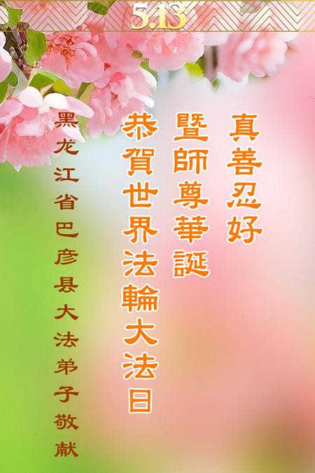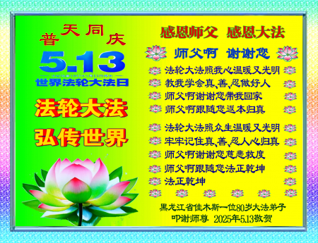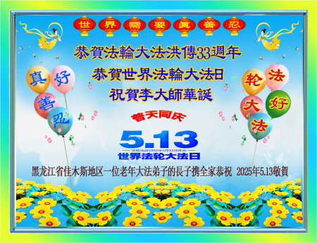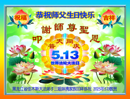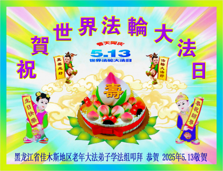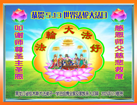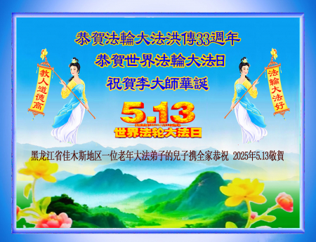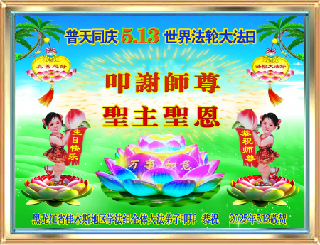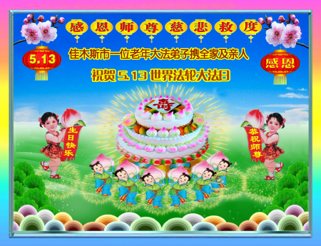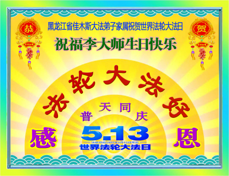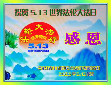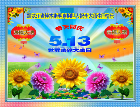 Toàn thể đệ tử Đại Pháp tại địa khu Giai Mộc Tư, tỉnh Hắc Long Giang chúc mừng ngày 13-5!