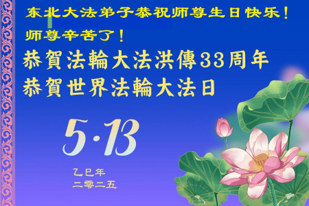 Kính chúc sinh nhật Sư tôn cùng Ngày Pháp Luân Đại Pháp Thế giới! Chúc mừng Pháp Luân Đại Pháp đã hồng truyền 33 năm!