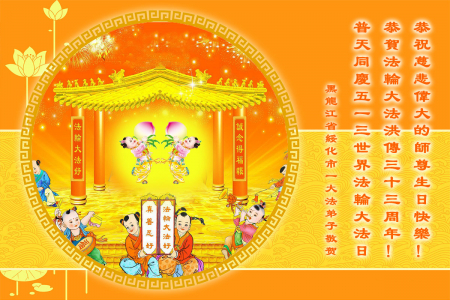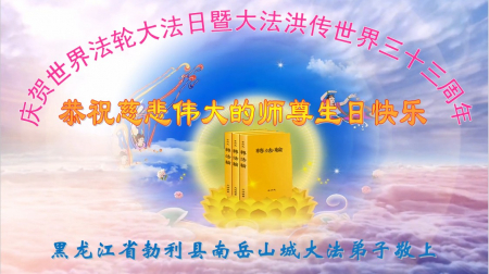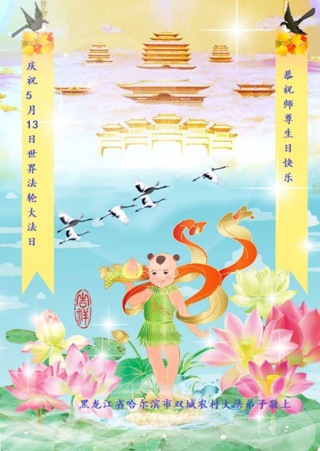 Đệ tử Đại Pháp tại thành phố Mẫu Đơn Giang, tỉnh Hắc Long Giang kính chúc Sư tôn từ bi vĩ đại sinh nhật vui vẻ!
