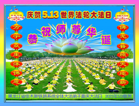 Toàn thể đệ tử Đại Pháp trong hệ thống đường sắt tại địa khu Giai Mộc Tư, tỉnh Hắc Long Giang chào mừng Ngày Pháp Luân Đại Pháp Thế giới 13-5!