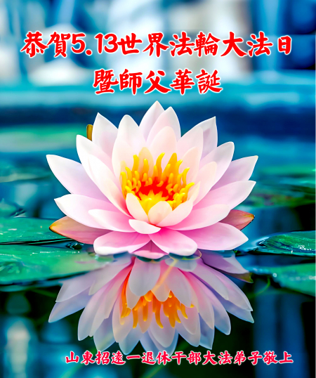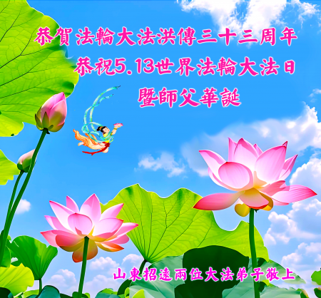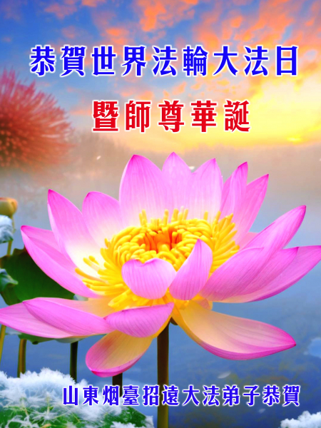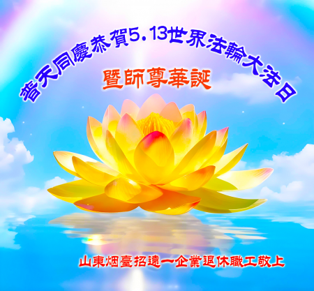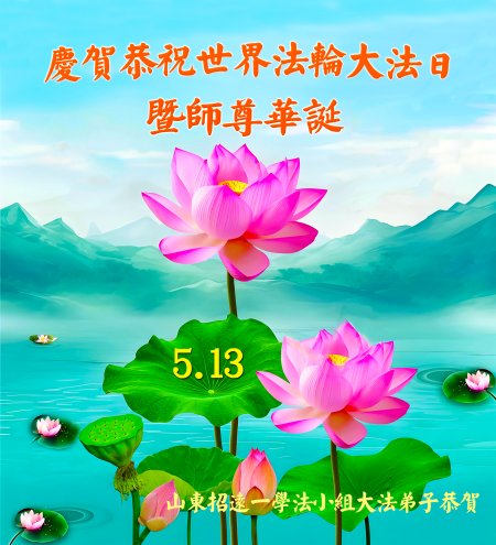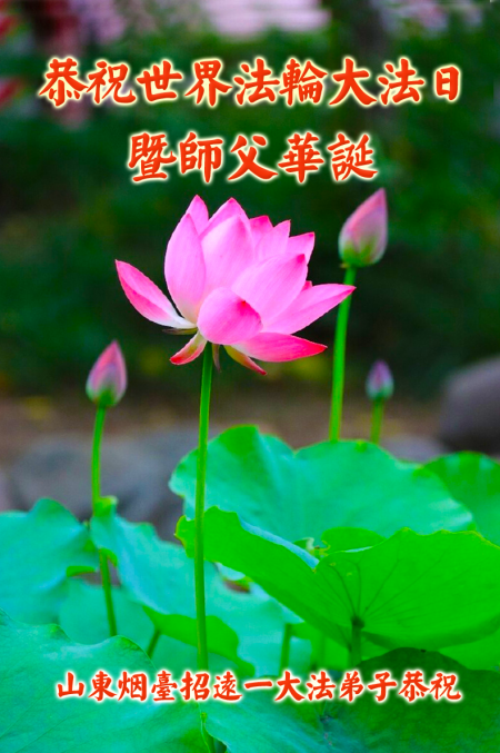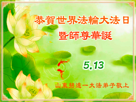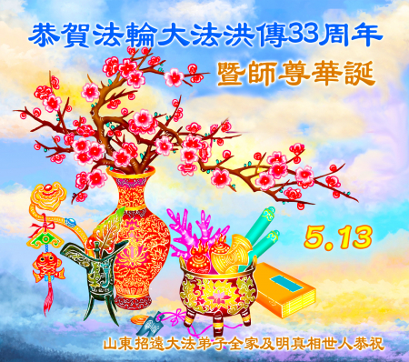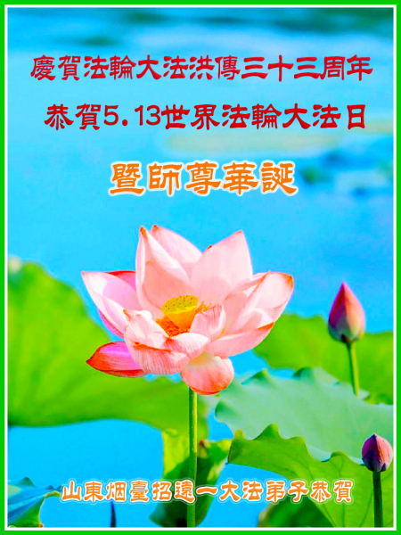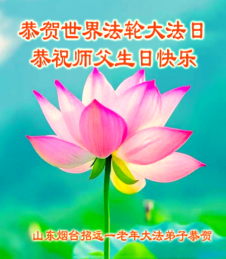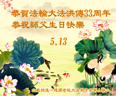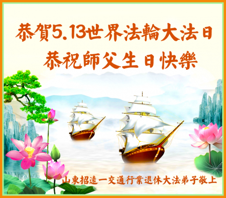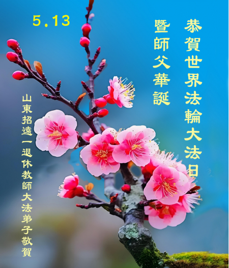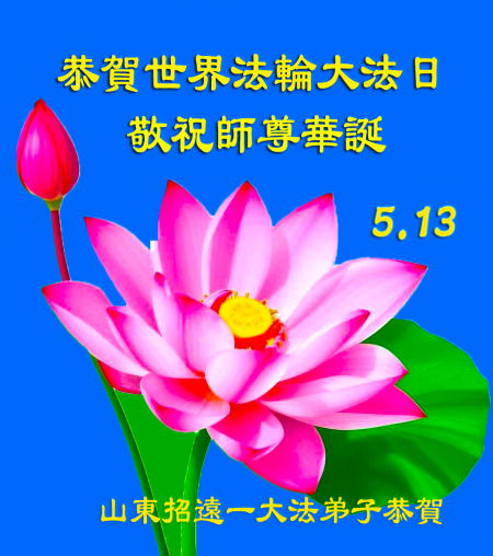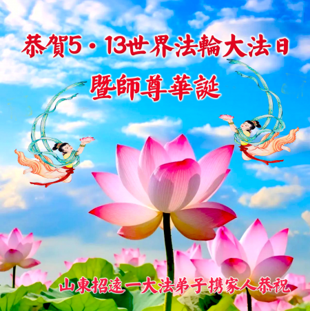 Một đệ tử Đại Pháp ở Chiêu Viễn, Yên Đài, Sơn Đông kính chúc mừng Ngày Pháp Luân Đại Pháp Thế giới 13/5 và chúc mừng sinh nhật Sư phụ!