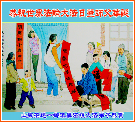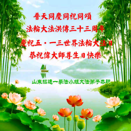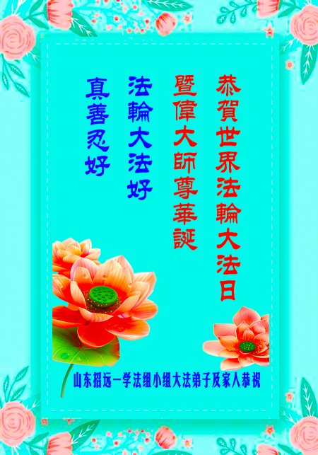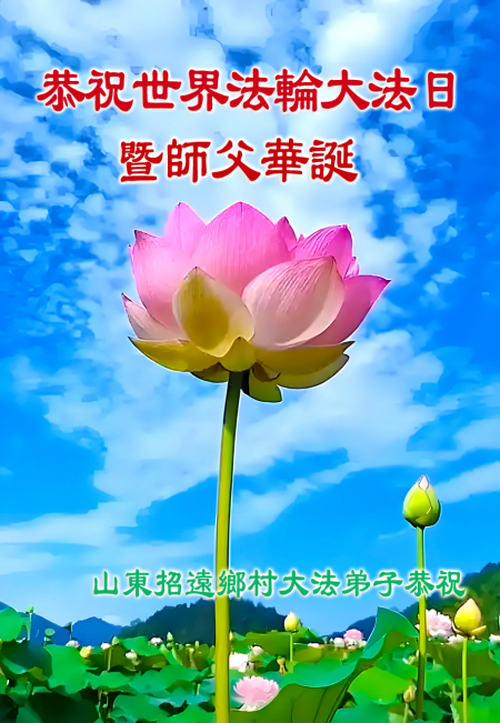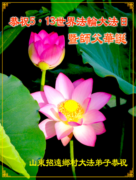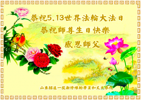 Toàn thể đệ tử Đại Pháp tại Chiêu Viễn, tỉnh Sơn Đông kính chúc Ngày Pháp Luân Đại Pháp Thế giới và sinh nhật Sư phụ!