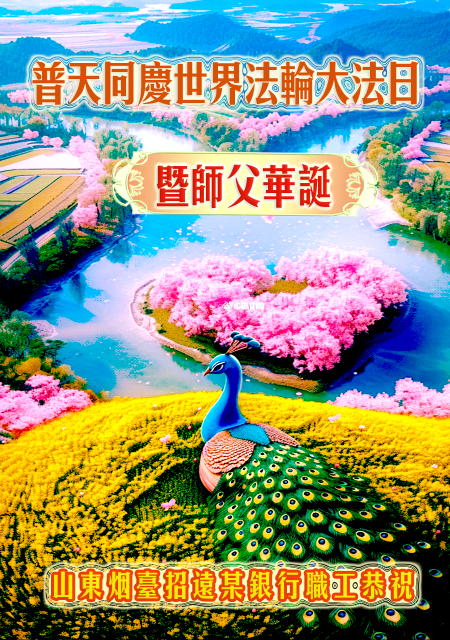 Một đệ tử Đại Pháp trong hệ thống tài chính ở Chiêu Viễn, Sơn Đông chúc mừng Ngày Pháp Luân Đại Pháp Thế giới và kính chúc sinh nhật Sư phụ!