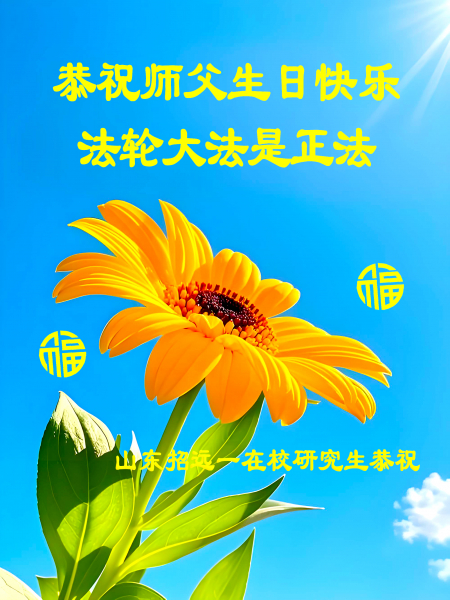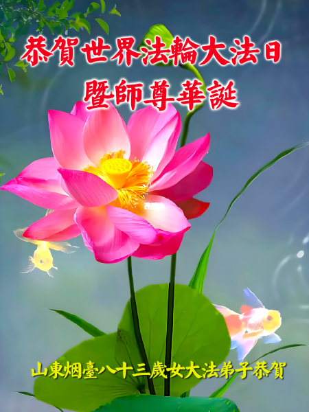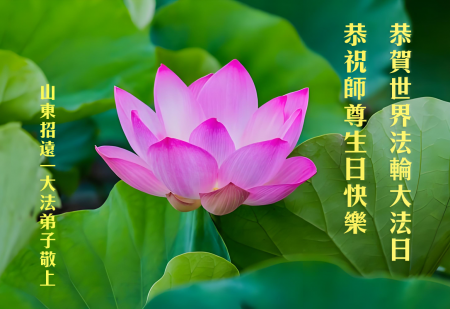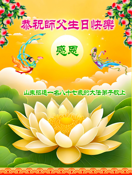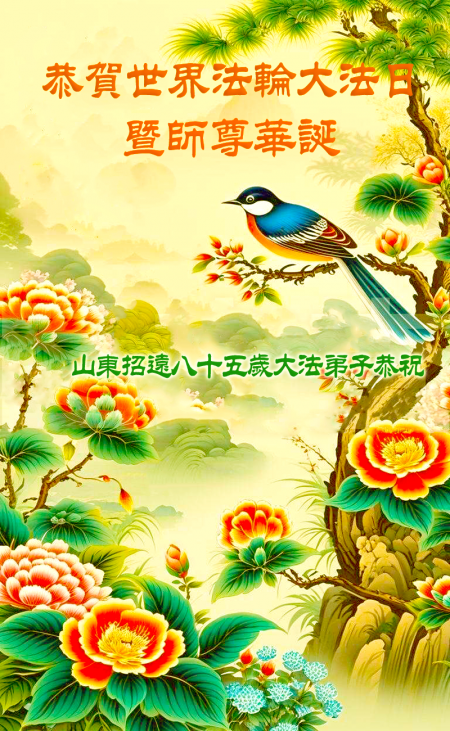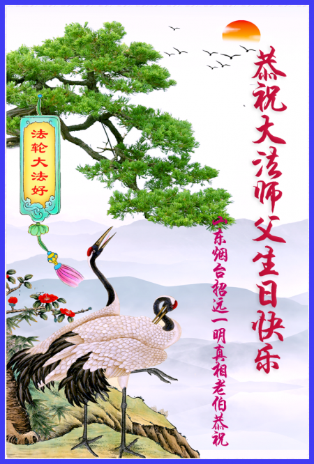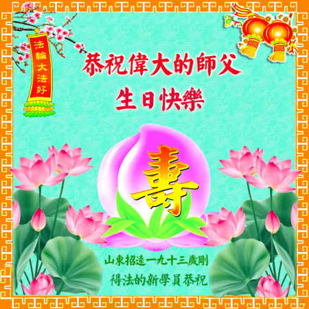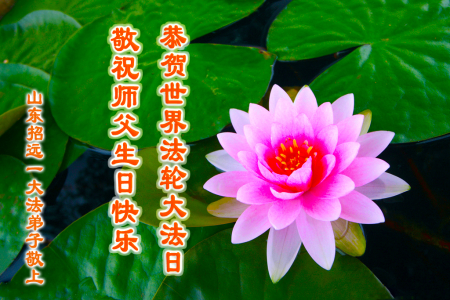 Một đệ tử Đại Pháp ở Chiêu Viễn, Sơn Đông cung chúc Sư tôn sinh nhật vui vẻ! Chúc mừng Ngày Pháp Luân Đại Pháp Thế giới!