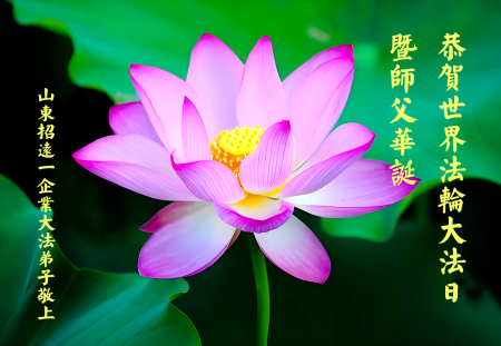 Một đệ tử Đại Pháp trong doanh nghiệp ở Chiêu Viễn, Sơn Đông kính chúc mừng Ngày Pháp Luân Đại Pháp Thế giới 13/5 và chúc mừng sinh nhật Sư phụ!