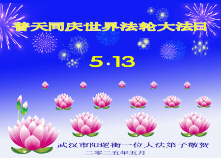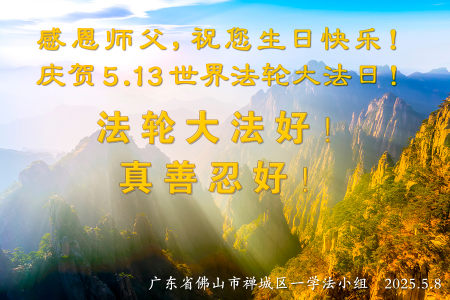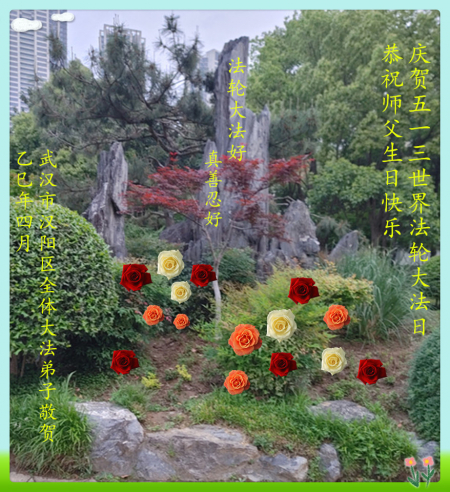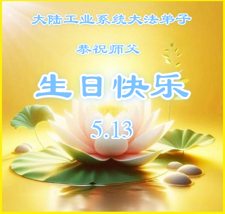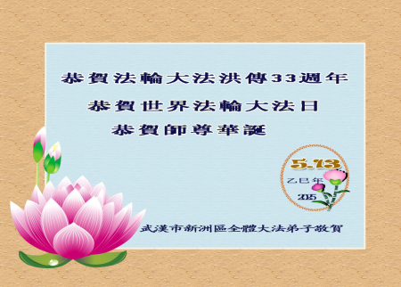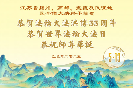 Nhân dịp Ngày Pháp Luân Đại Pháp Thế giới 13/5, đệ tử Đại Pháp ở Hoài An, Giang Tô xin vấn an Sư tôn! Kính chúc Sư tôn từ bi vĩ đại sinh nhật vui vẻ!