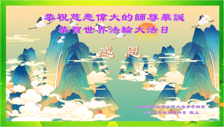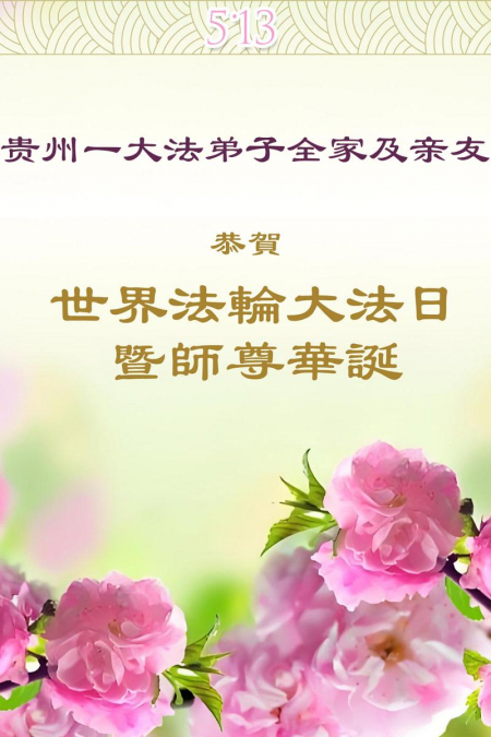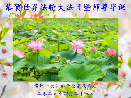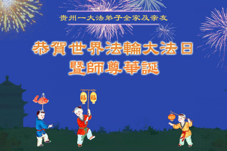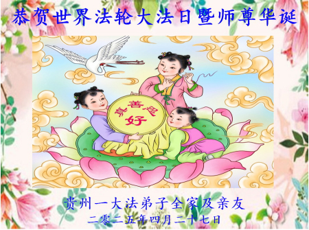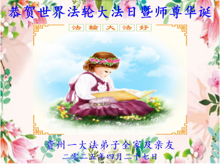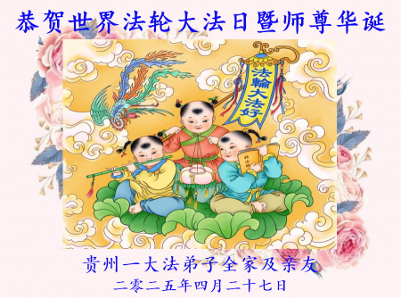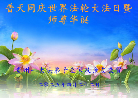 Một đệ tử Đại Pháp tại Quý Châu cùng toàn thể gia đình và bạn bè thân quyến xin chúc mừng Ngày Pháp Luân Đại Pháp Thế giới và mừng sinh nhật Sư tôn!