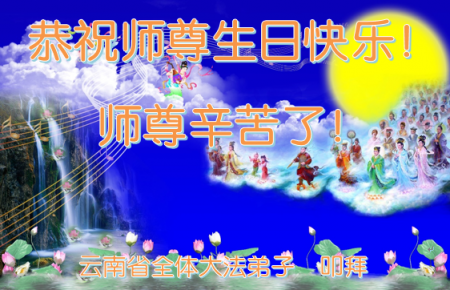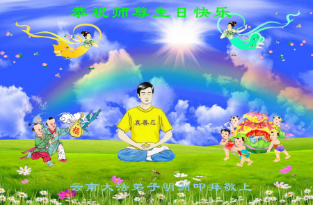 Các đệ tử Đại Pháp tỉnh Vân Nam kính chúc Sư tôn từ bi vĩ đại sinh nhật vui vẻ!