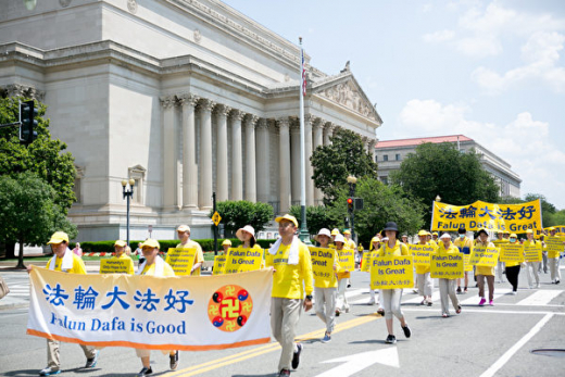 Ảnh chụp ngày 16/07/2021 cho thấy hàng nghìn học viên Pháp Luân Công đã tổ chức một cuộc diễu hành quy mô lớn tại Washington DC. (Ảnh: Lý Sa/ The Epoch Times)