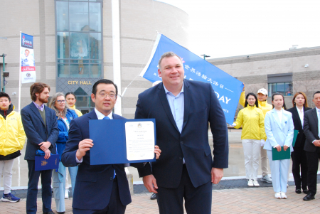 Sau đó, Thị trưởng Nuttall đã đọc thư khen ngợi và tuyên bố ngày 13/5 là “Ngày Pháp Luân Đại Pháp” của thành phố.
