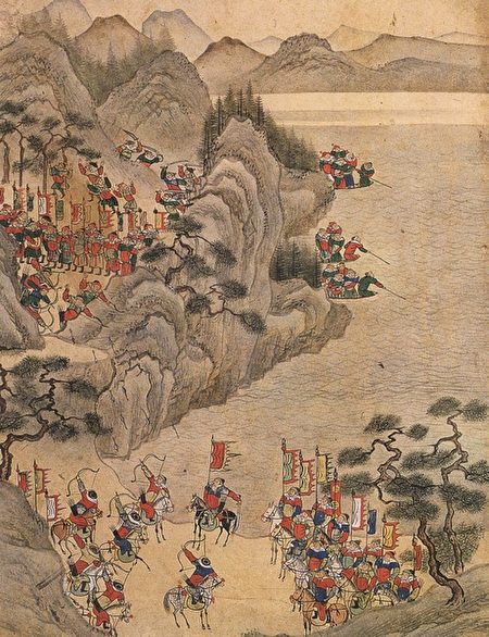 Nhạc Phi lấy kỳ mưu chiến thắng mười vạn quân của Lý Thành, lập được kỳ công. Bức tranh “Xuất kỳ phá tặc đồ” nằm trong bộ “Bắc quan di tích đồ thiếp” của Triều Tiên. (Ảnh thuộc sở hữu cộng đồng)