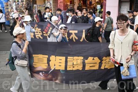 Chiều ngày 01/06/2025, sự kiện công chiếu toàn cầu bộ phim “Nội tạng quốc doanh” đã được tổ chức tại khu Tây Môn Đình, Đài Bắc, thu hút đông đảo người dân quan tâm. (Ảnh: Tống Bích Long/The Epoch Times)