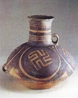Dựa trên các nghiên cứu khảo cổ học đương đại, người ta phát hiện rằng họa tiết hình chữ vạn “卍” ở Trung Quốc đã có lịch sử lâu đời. Các hiện vật khai quật được từ thời đại đồ đá mới cách đây khoảng 9000 năm ở Trung Quốc đã xuất hiện họa tiết hình chữ “卍”. Dưới đây là một chiếc bình cổ dài có họa tiết chữ “卍” từ văn hóa Mã Gia Diêu thời đại đồ đá mới:
