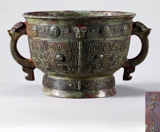 Âu đồng có hoa văn mặt thú thời nhà Thương, được nhìn thấy tại phiên đấu giá mùa xuân Bảo Lợi Hồng Kông năm 2018: