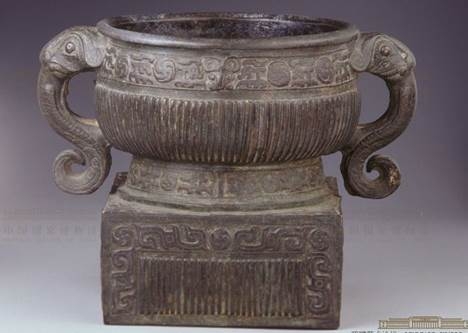 Vò đựng rượu bằng đồng có hoa văn hình xoáy ốc và quai hình đầu dê thời Tây Chu, được khai quật năm 1959 tại huyện Bành, tỉnh Tứ Xuyên, hiện được lưu giữ tại Bảo tàng Tứ Xuyên.