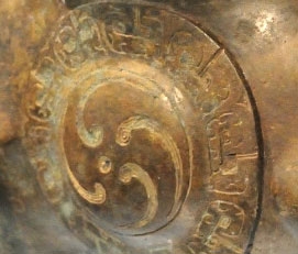 Hãy xem hình dưới đây, hoa văn trên đồ đồng (bình tắm của Tử Thặng nước Vy thời Đông Chu) vẫn thường thấy ở các khu vực như Tây Tạng, Nhật Bản, Hàn Quốc ngày nay, được gọi là “hoa văn xoáy ba cánh”, và thường được gọi là “tam ba văn”, “tam câu nguyệt”, v.v.