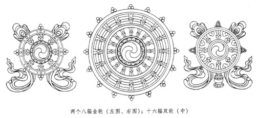 Các hoa văn loại này thường thấy trên các vật dụng của Phật giáo ở Tây Tạng. Do lo ngại liên quan đến vấn đề “bất nhị pháp môn”, bài viết này không trích dẫn cụ thể. Tuy nhiên, cần làm rõ một điểm: