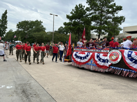 Ngày 04/07/2025, trong cuộc diễu hành mừng Ngày Độc lập Hoa Kỳ tổ chức tại thành phố Woodlands, phía bắc Houston, tiểu bang Texas, xe hoa và các binh sĩ của đơn vị đặc nhiệm phía Đông thuộc Lữ đoàn 779 Thủy quân lục chiến Hoa Kỳ đã xuất hiện. (Ảnh: Ngô Hương Liên/The Epoch Times)