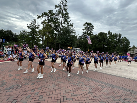 Ngày 04/07/2025, trong cuộc diễu hành mừng Ngày Độc lập Hoa Kỳ tại thành phố Woodlands, phía bắc Houston, tiểu bang Texas, đội cổ vũ của một trường trung học địa phương đã tham gia biểu diễn. (Ảnh: Ngô Hương Liên/The Epoch Times)