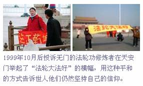Sau tháng 10 năm 1999, các học viên Pháp Luân Công không có nơi khiếu nại, họ đã giương tấm biểu ngữ “Pháp Luân Đại Pháp hảo” tại Quảng trường Thiên An Môn, dùng cách thức ôn hòa này để nói với con người thế gian rằng họ vẫn kiên định với tín ngưỡng của mình.