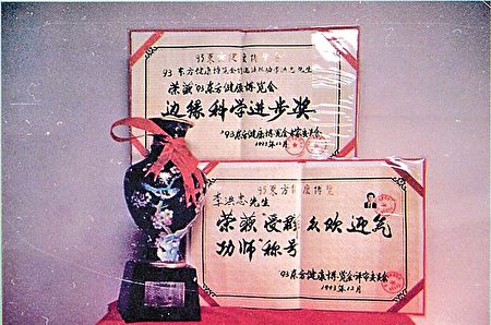 Sư phụ Lý Hồng Chí được trao giải cao nhất của hội chợ là “Giải Tiến bộ khoa học biên giới” và danh hiệu “Khí công sư được quần chúng yêu thích”. (NXB Bác Đại cung cấp)