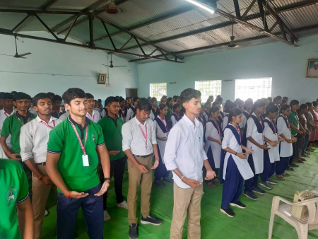 “Trường Tiểu học và Trung học Pratibha, Mohpa, chứng nhận rằng Tiến sĩ Avinash Gedam cùng các học viên Pháp Luân Đại Pháp đã hướng dẫn các bài công pháp của Pháp Luân Đại Pháp tại trường vào thứ Ba, ngày 12 tháng 8 năm 2025 với sự tham gia nhiệt tình của khoảng 200 học sinh từ lớp 5–10, cùng đội ngũ giáo viên và nhân viên.