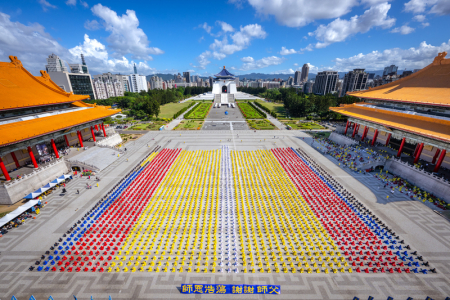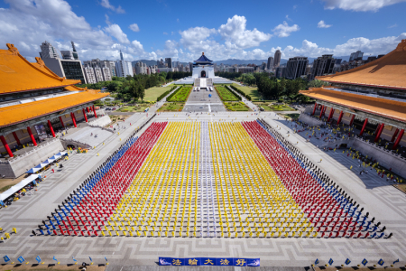 Ngày 18/10, hơn 5.000 học viên Pháp Luân Công đến từ Đài Loan, Mỹ, Canada, Nhật Bản, Hàn Quốc, Hồng Kông và các nơi khác, đã xếp hình lớn “Pháp Luân đồ hình” cùng các chữ “Pháp Luân Thường Chuyển” tại Quảng trường Tự Do, khu Tưởng niệm, quận Trung Chính, Đài Bắc. Cảnh tượng thù thắng, tráng lệ, truyền tải vẻ đẹp của Pháp Luân Đại Pháp đến với xã hội Đài Loan.
