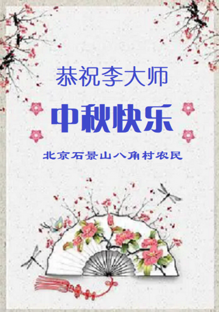 Nông dân thôn Bát Giác, Thạch Cảnh Sơn, Bắc Kinh kính chúc Đại sư Lý Trung Thu vui vẻ!