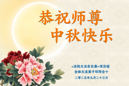Toàn thể đệ tử Đại Pháp ở tổ hạng mục “Pháp Luân Đại Pháp tại Trường Xuân” kính chúc Sư tôn từ bi vĩ đại Trung Thu vui vẻ!
